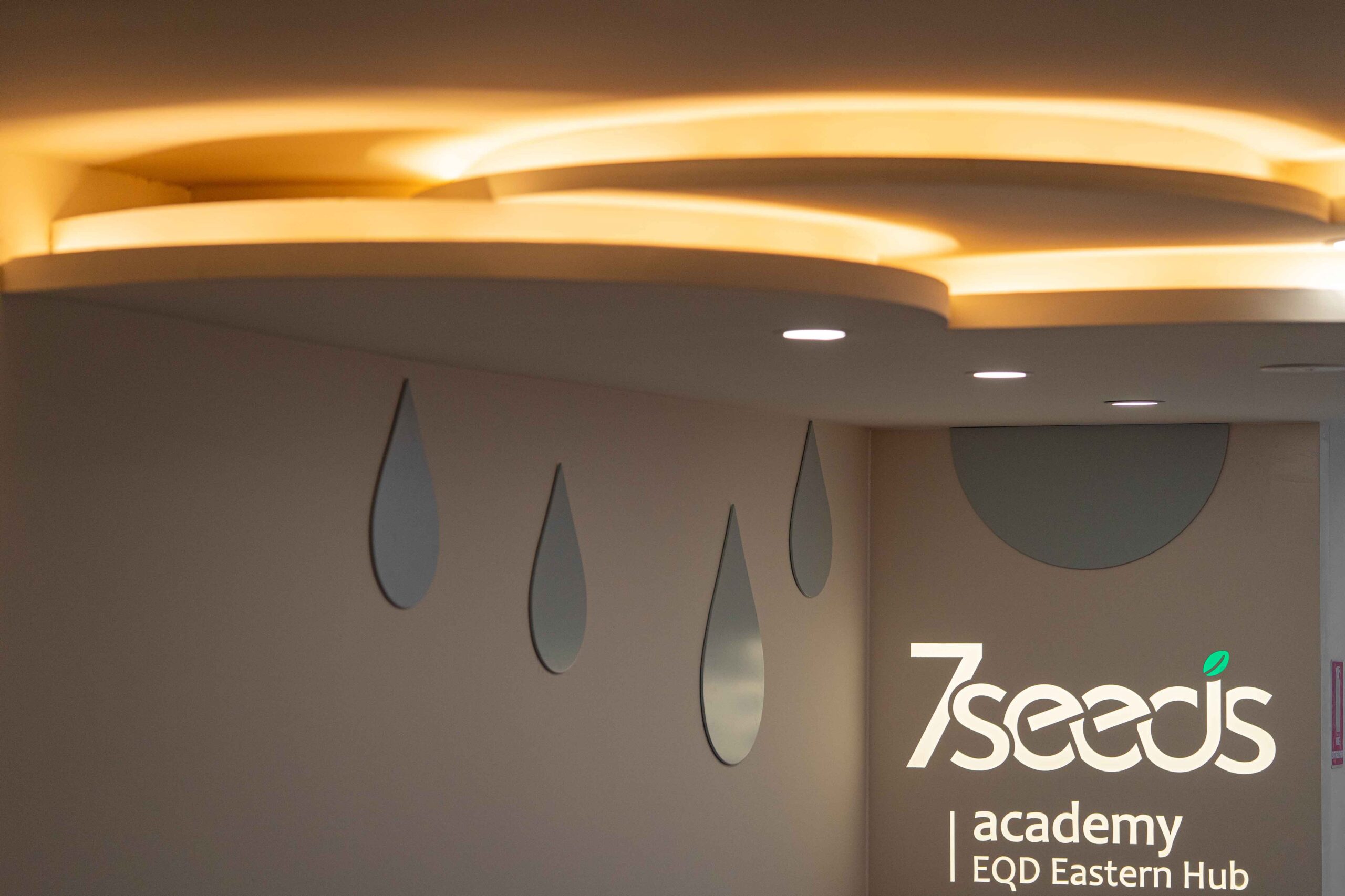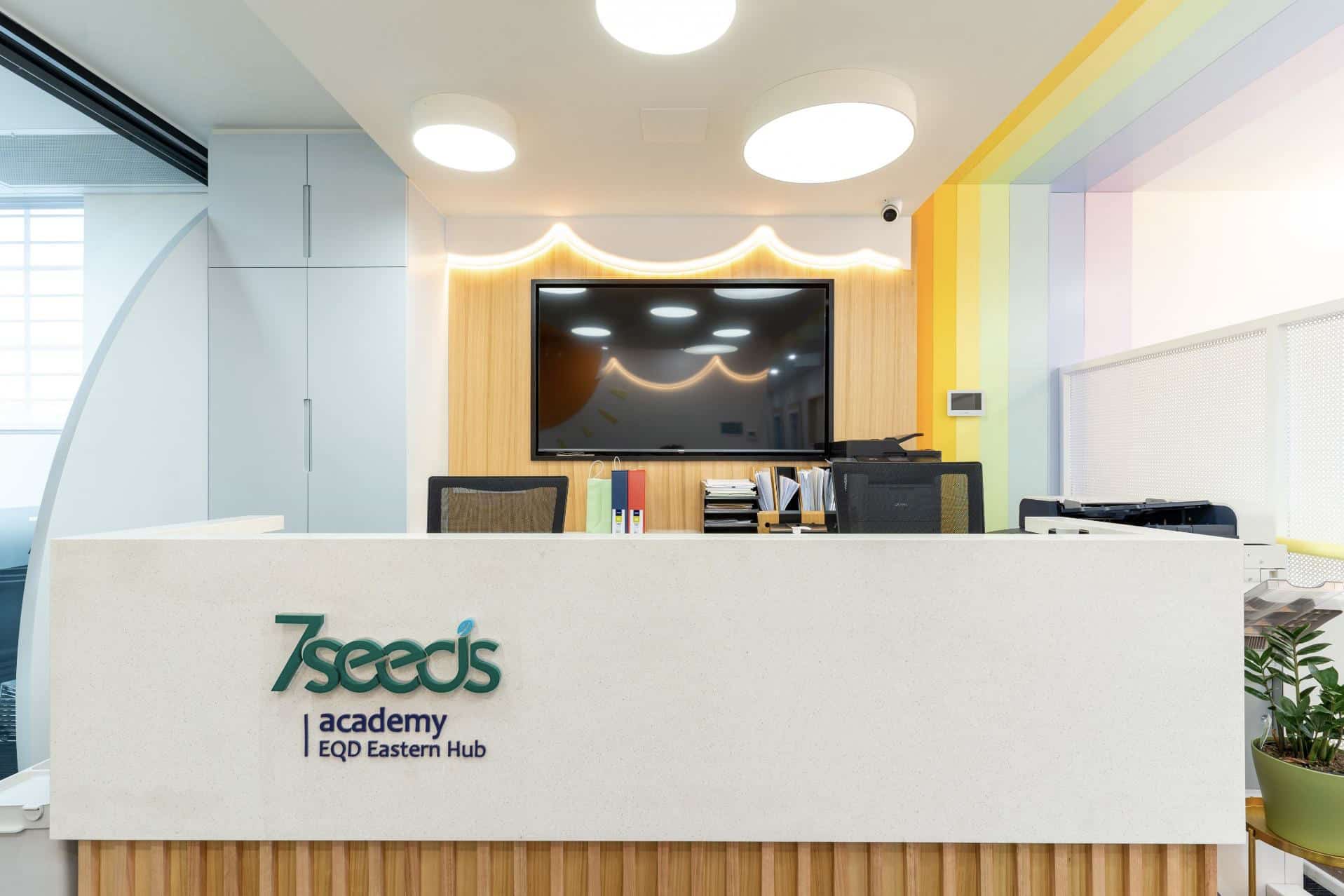 The design intent is to create a space that feels uplifting, inspiring, and welcoming, reinforcing the message that “the future starts from 7 Seeds.”