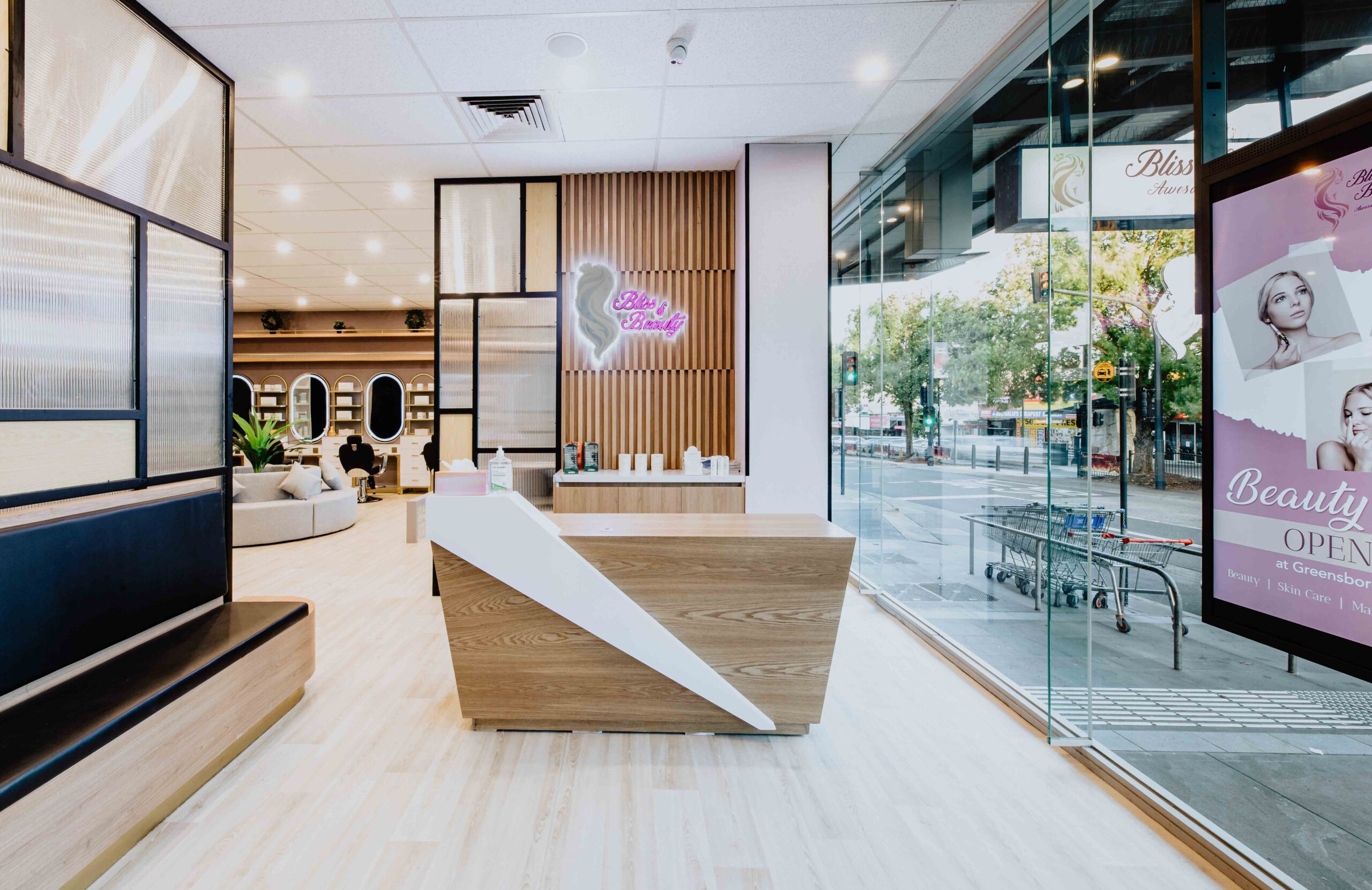 The brief involved the design and documentation of a new hair salon and beauty tenancy at Greensborough Plaza. The concept was to create a fresh, contemporary, and style-forward environment—broadening the appeal to younger customers while continuing to serve the existing client base.