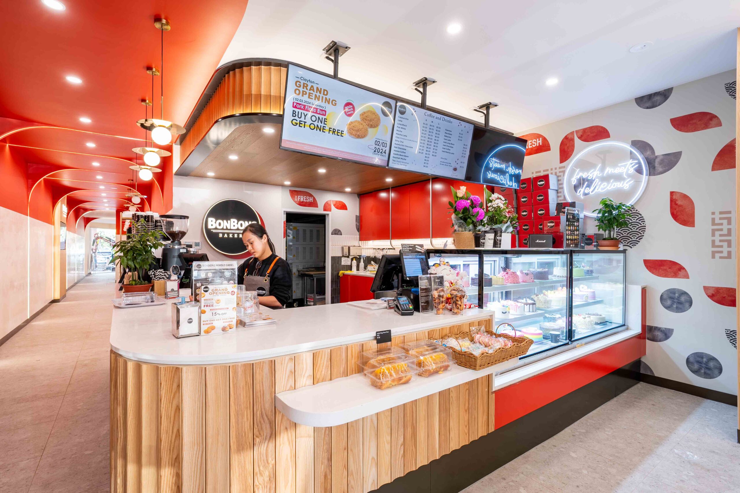 Bonbons Bakery is an Australian-based franchise brand with an international presence, specialising in “grab-and-go” offerings including Asian and Western-style freshly baked breads, hot and cold beverages, cakes, and confectionery. s2dio-X was appointed as Architect for the latest store at Clayton.
