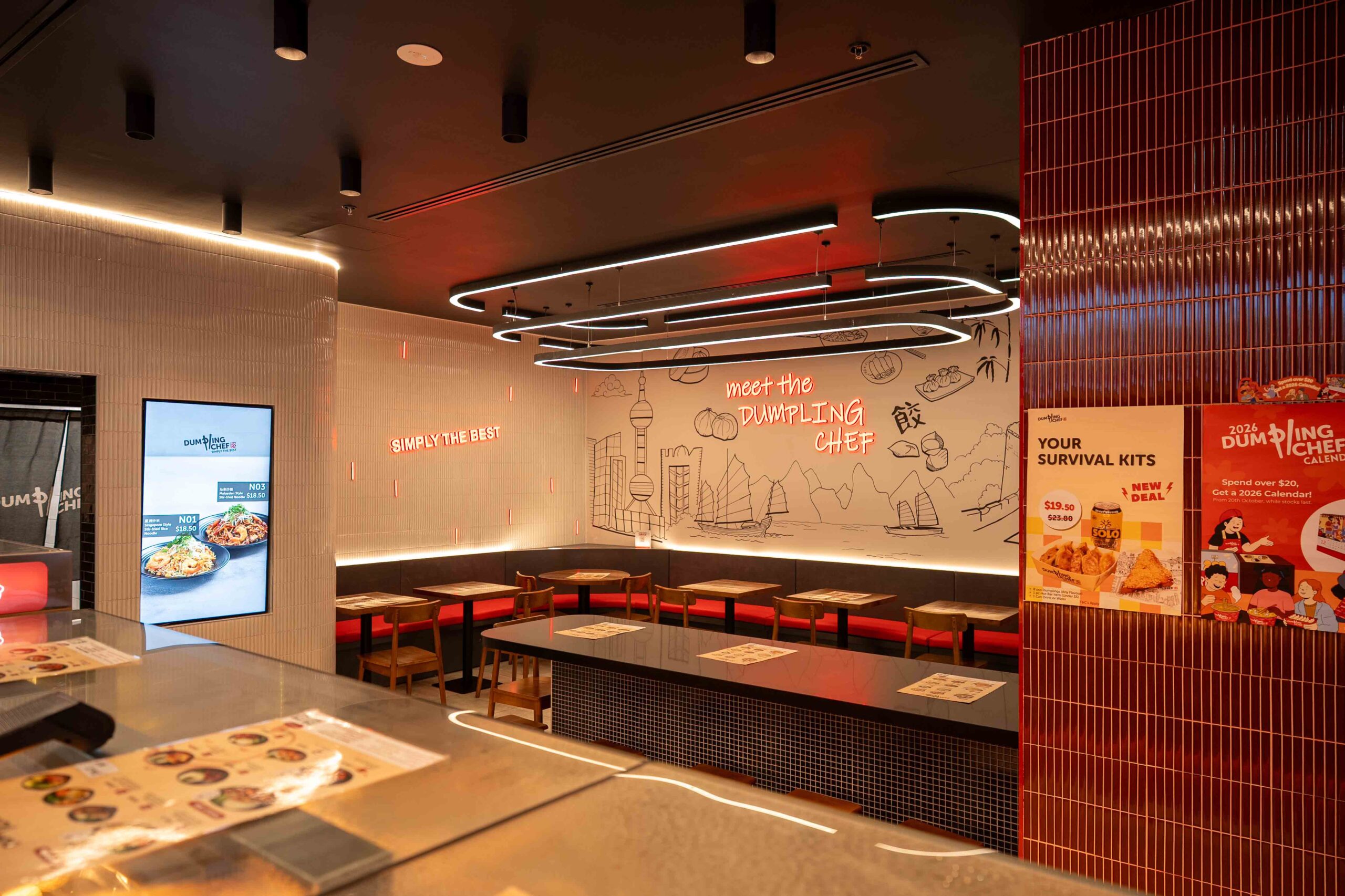 The brief involved the design and documentation of a new Dumpling Chef tenancy at Melbourne Central, including an internal seating area for dine-in service.