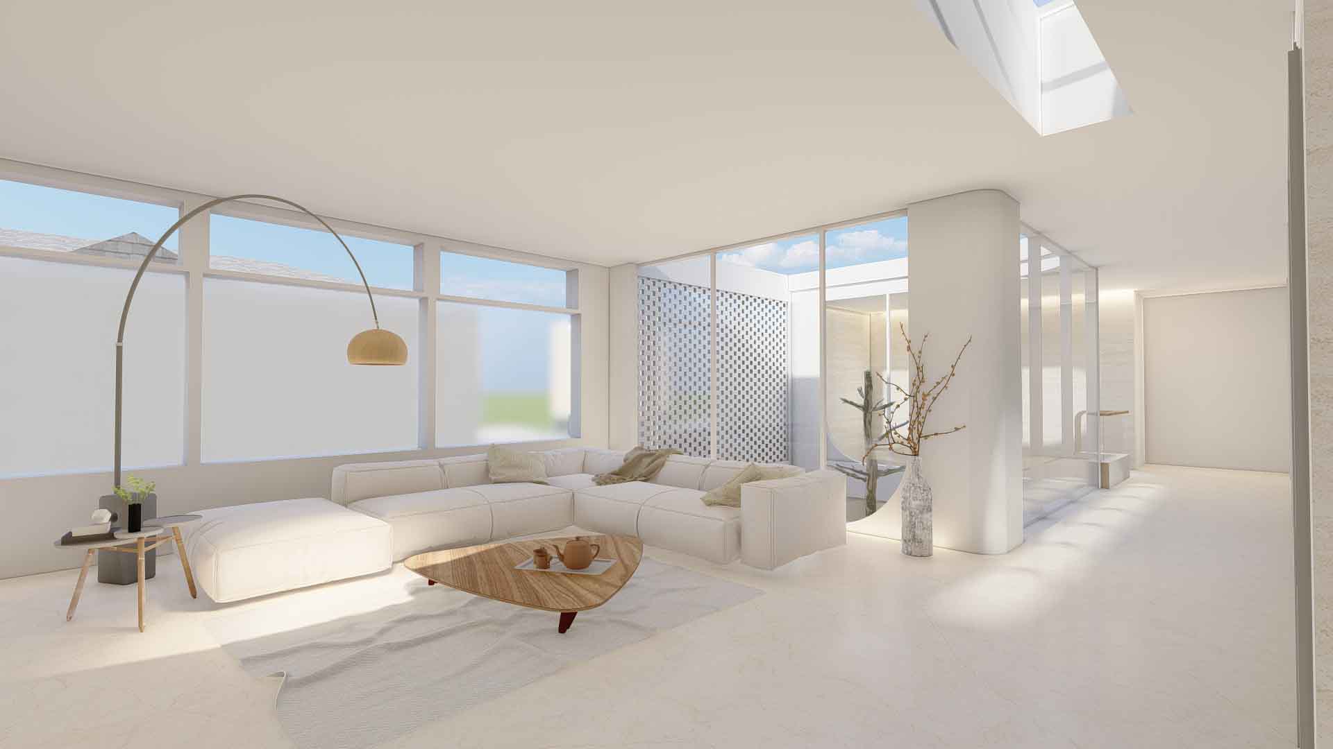 The design intent centres on calmness and retreat—an architecture of quiet moments, where light, proportion, and materiality cultivate a serene living environment.