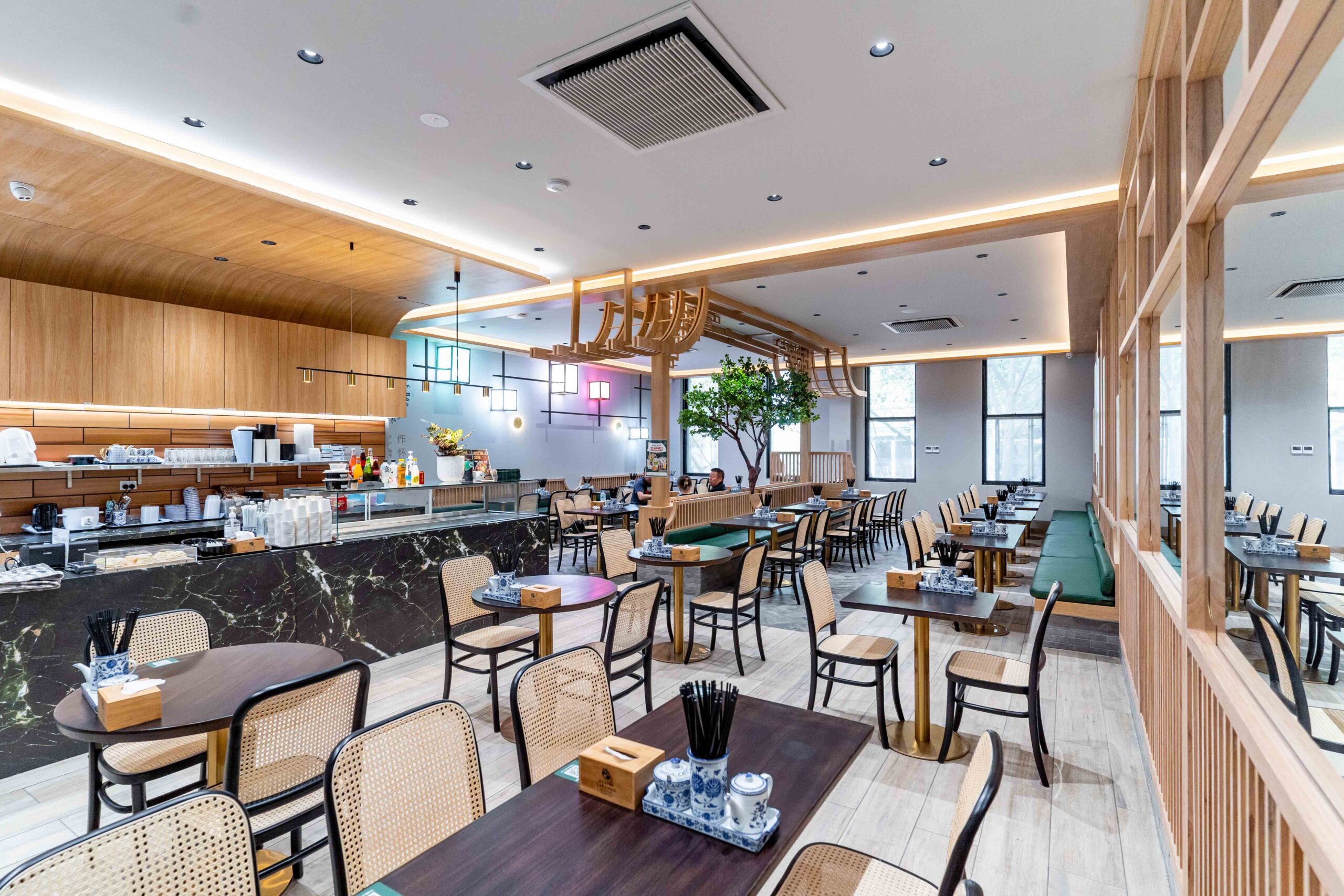 The design concept is informed by the fusion of broader Eastern cultural references and is expressed through the integration of traditional Chinese architectural principles with modern materials and detailing. An introverted, Zen-like calm forms the point of departure: a composed spatial sequence that prioritises balance, restraint, and atmosphere. Within this framework, heritage cues—such as layered thresholds, rhythm, and proportion—are reinterpreted in a contemporary manner, allowing new interventions to sit comfortably alongside tradition. The result is a space that maintains the charm of classical Chinese spatial structure while presenting a modern simplicity and elegance—quietly refined, yet rich in character and spirit.