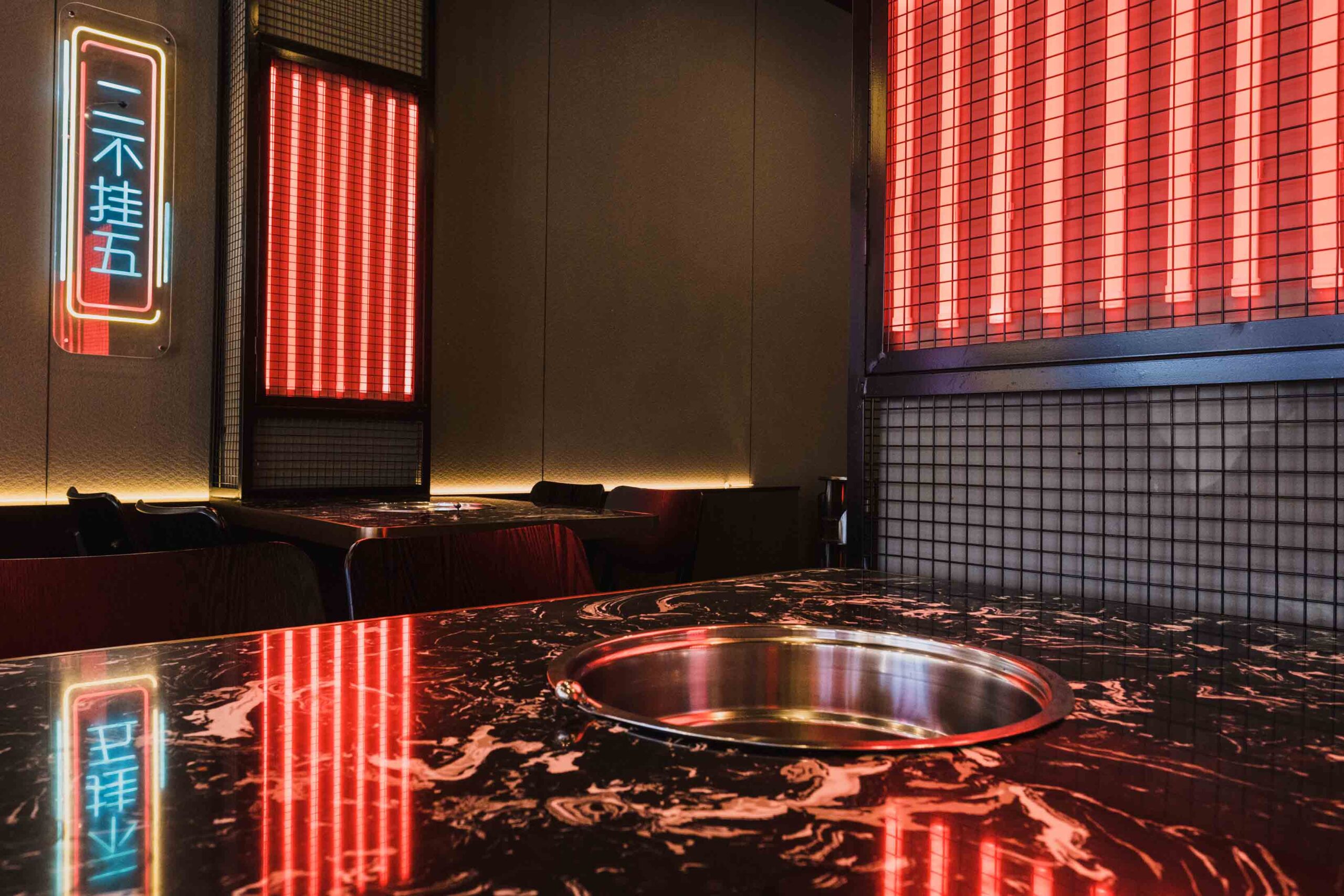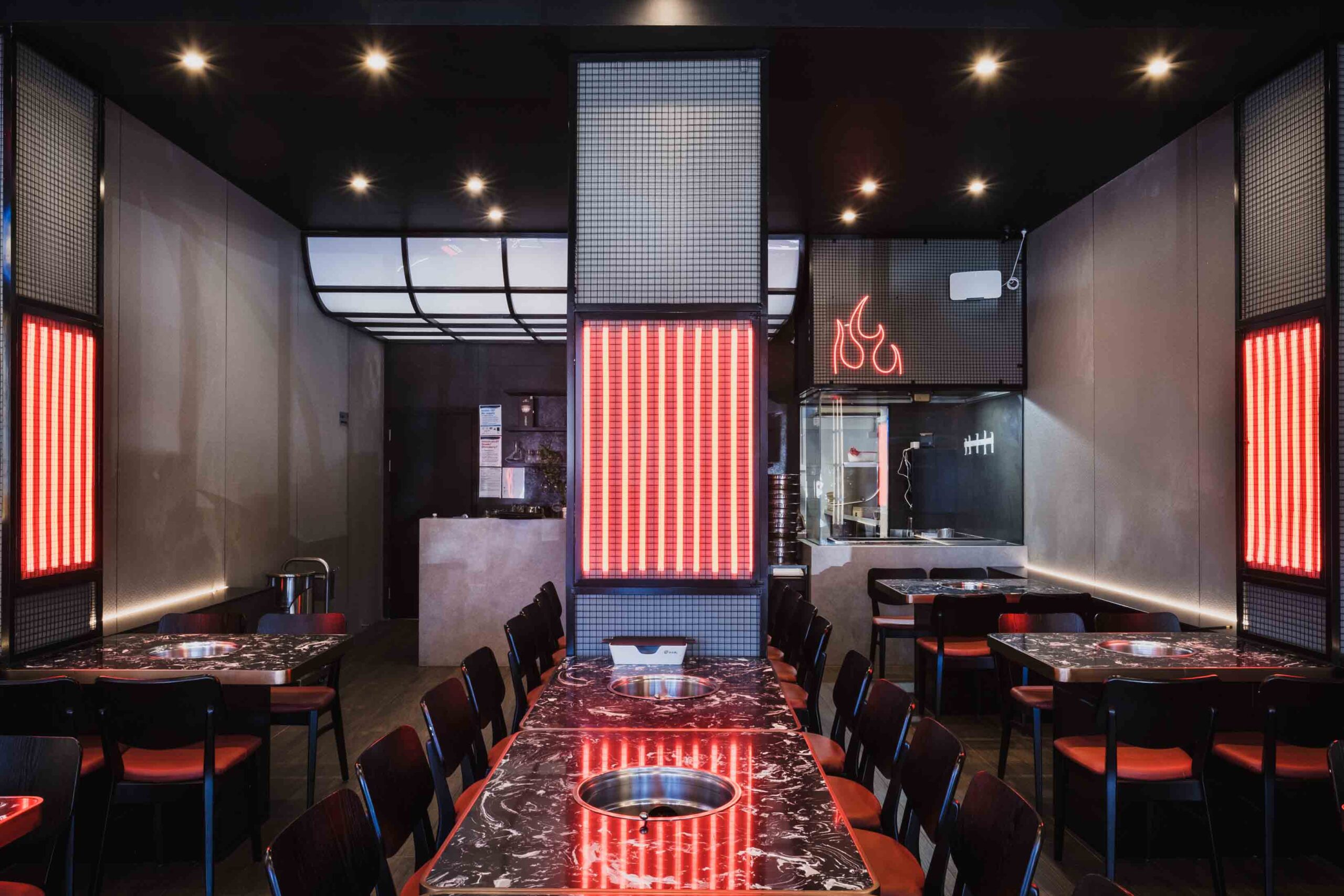 The design is conceived to feel lively, immersive, and social. Layered lighting, graphic moments, and animated material textures evoke the glow and intensity of fire, while “night market” cues inform the density, warmth, and visual rhythm of the space. The overall intent is to create a venue that embraces sound, movement, and shared experience—not a quiet dining room, but a place where groups can cook together, eat, talk, and laugh freely in an unapologetically vibrant setting.