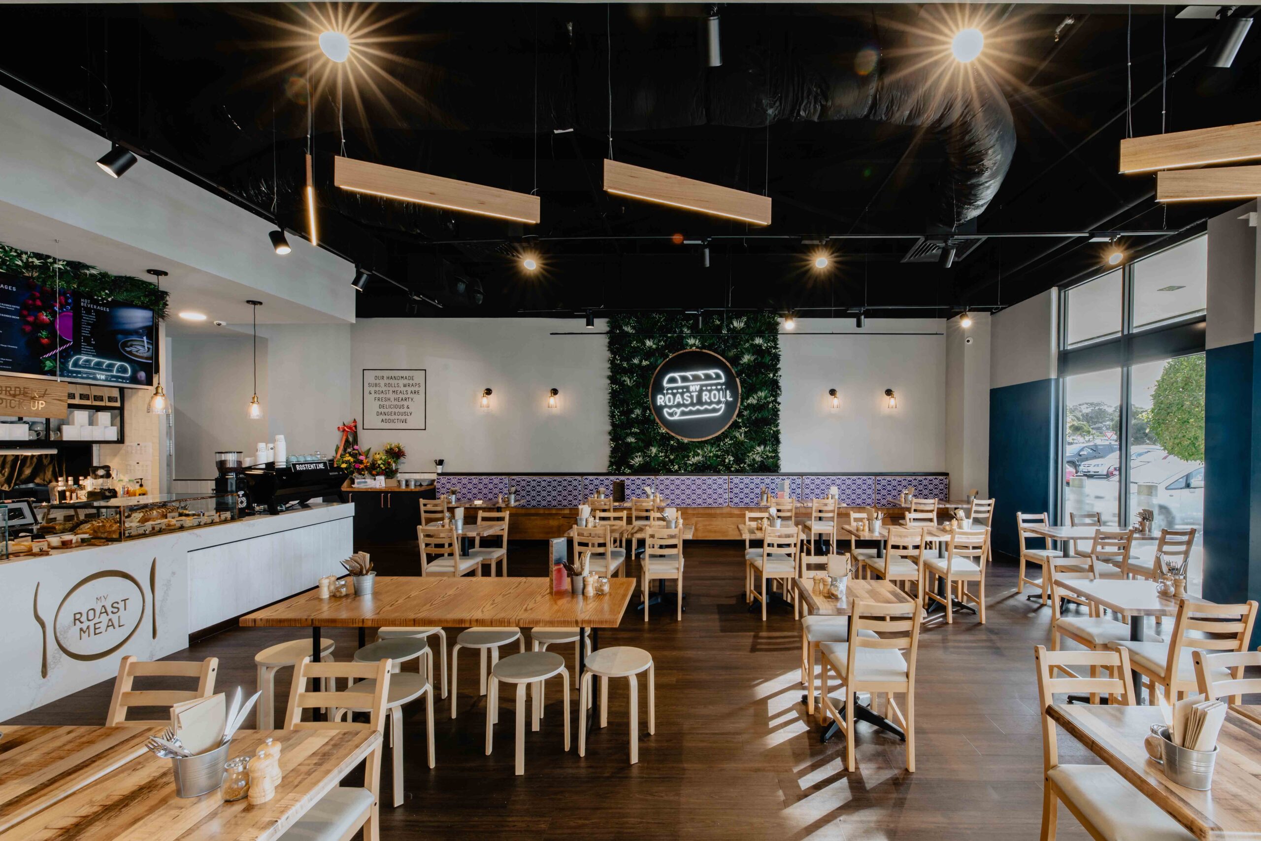 A new franchise restaurant mainly focus on roasted food. The brief is called to design a restaurant for all ages at Rosebud, the design inspired by the chilled environment and mood of Rosebud integrating materials and hues of the coastal nature and architecture.