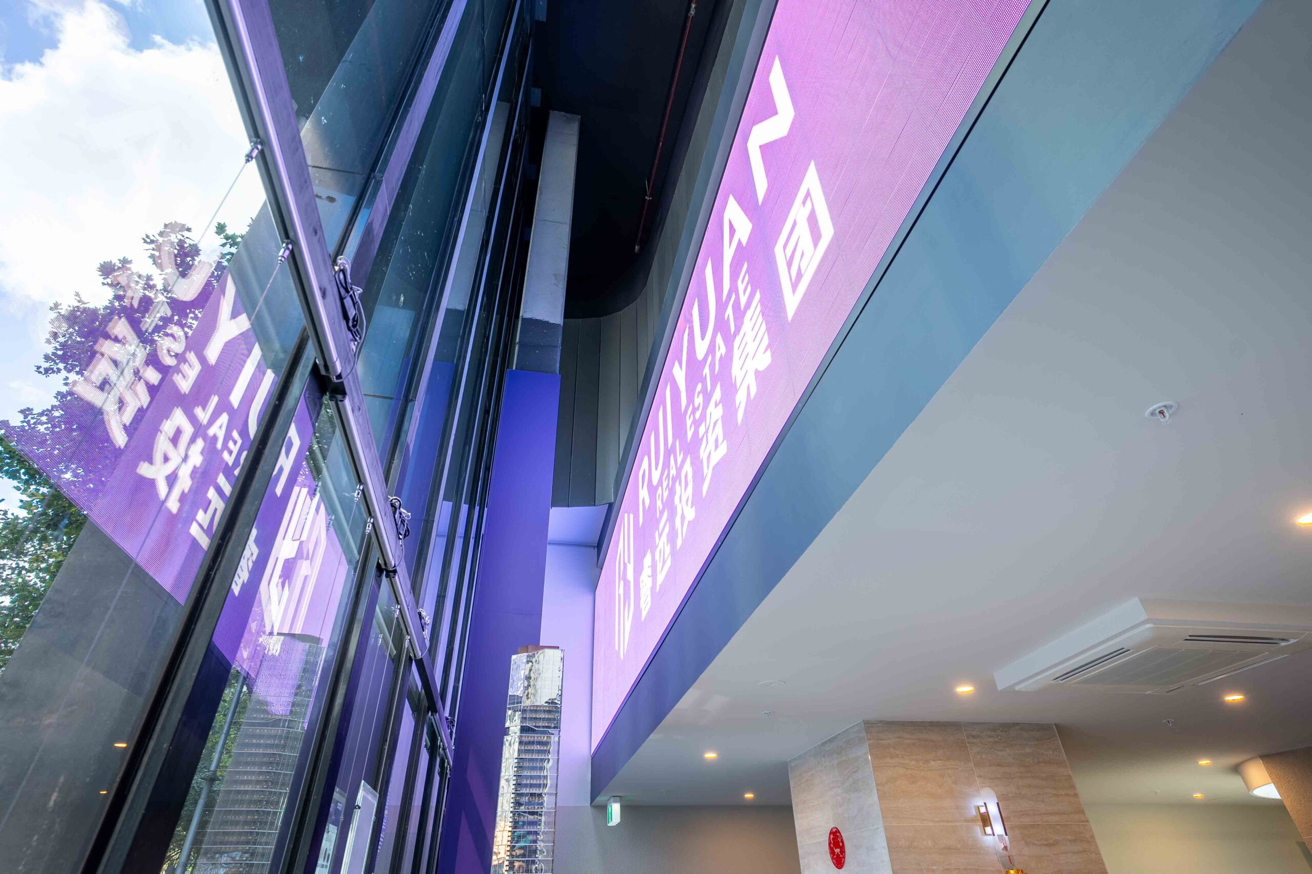 A key feature of the project is a 7.0m-wide x 2.1m-high translucent LED digital screen positioned at mezzanine level. Oriented to Elizabeth Street, it provides strong street presence and high visibility to passing traffic, acting as a prominent brand and marketing element for the tenancy.