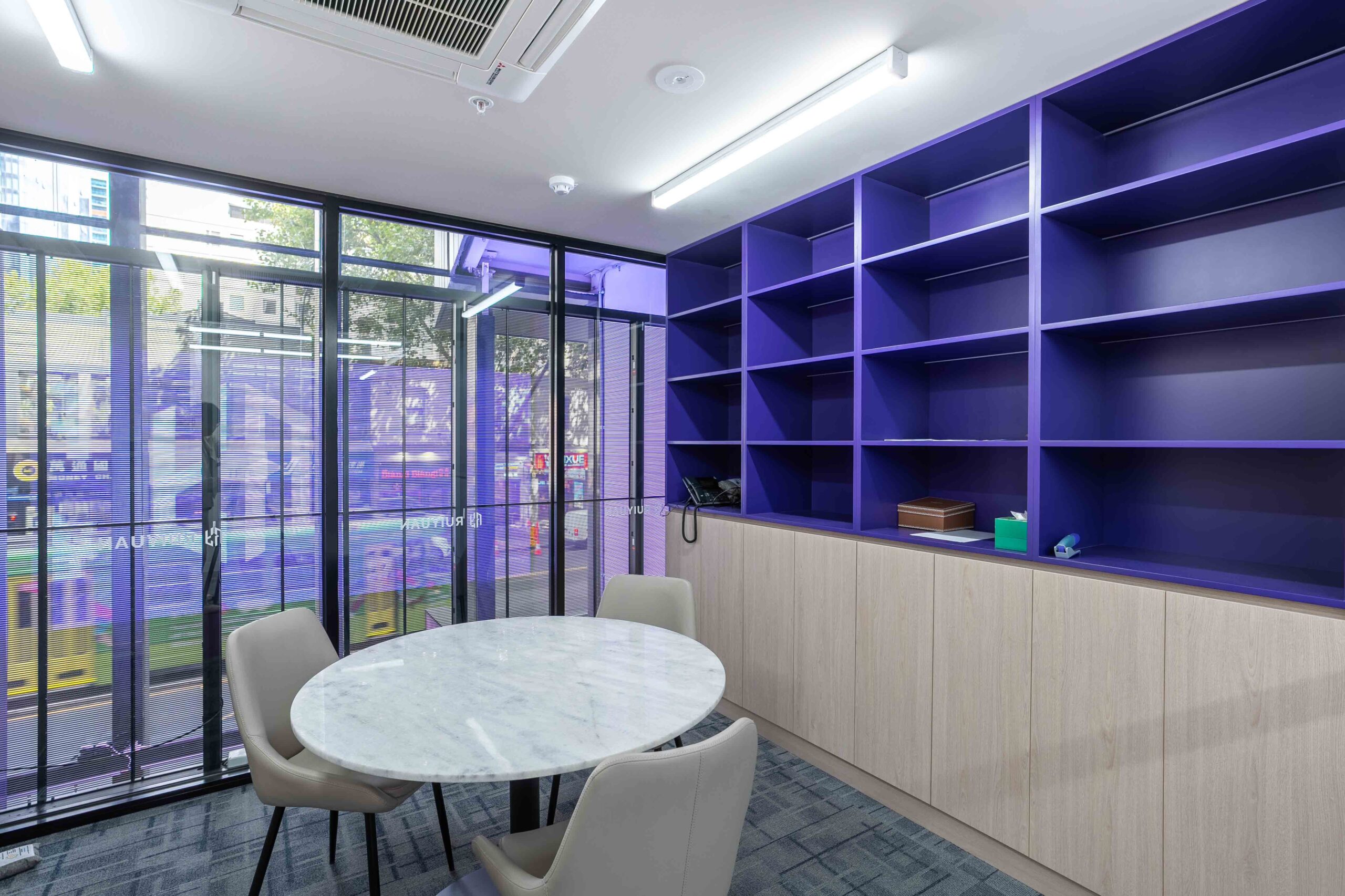 The brief involves the design and documentation of a new two-level office and showroom for a real estate investment company. The client nominated purple as the primary theme colour, reflecting the owner’s personal preference and brand identity.